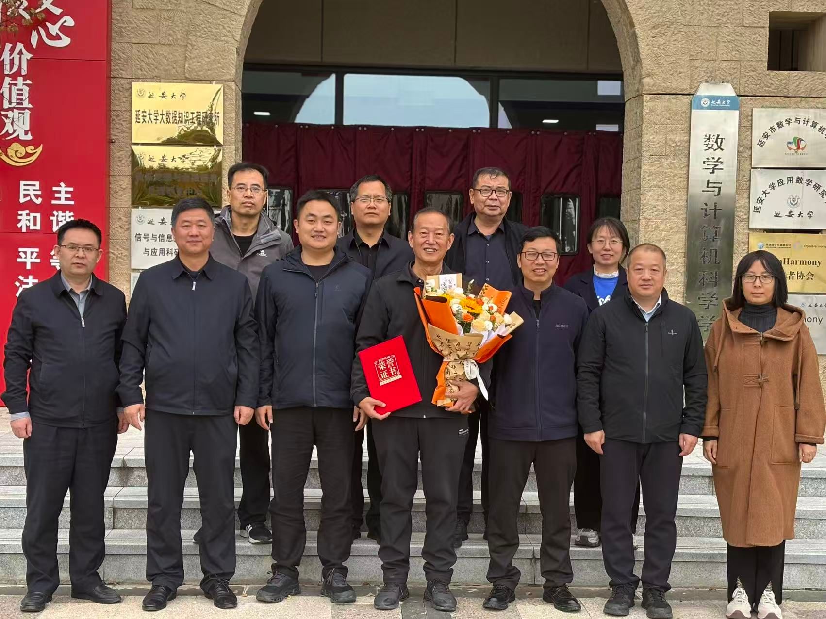 随后,学校人事处副处长杨轩宣读并颁发荣誉证书,离退处副处长阮艳军送上关怀祝福。李向有、郭婵婵老师作为教师代表发言,感念两位老师的付出,承诺传承学院优良教风,并祝愿他们退休生活愉快,欢迎常回学院指导。副院长冯强、田云娜分别为两位老师赠送纪念品与鲜花。